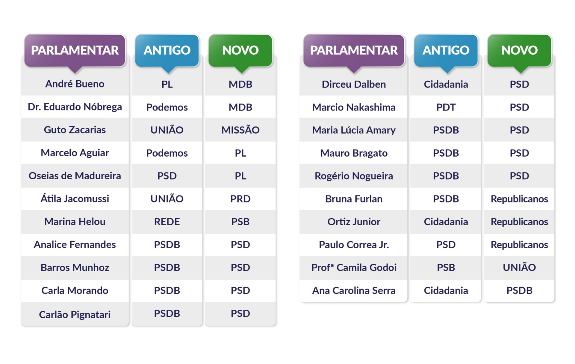 Confira abaixo a lista de parlamentares que trocaram de legenda: