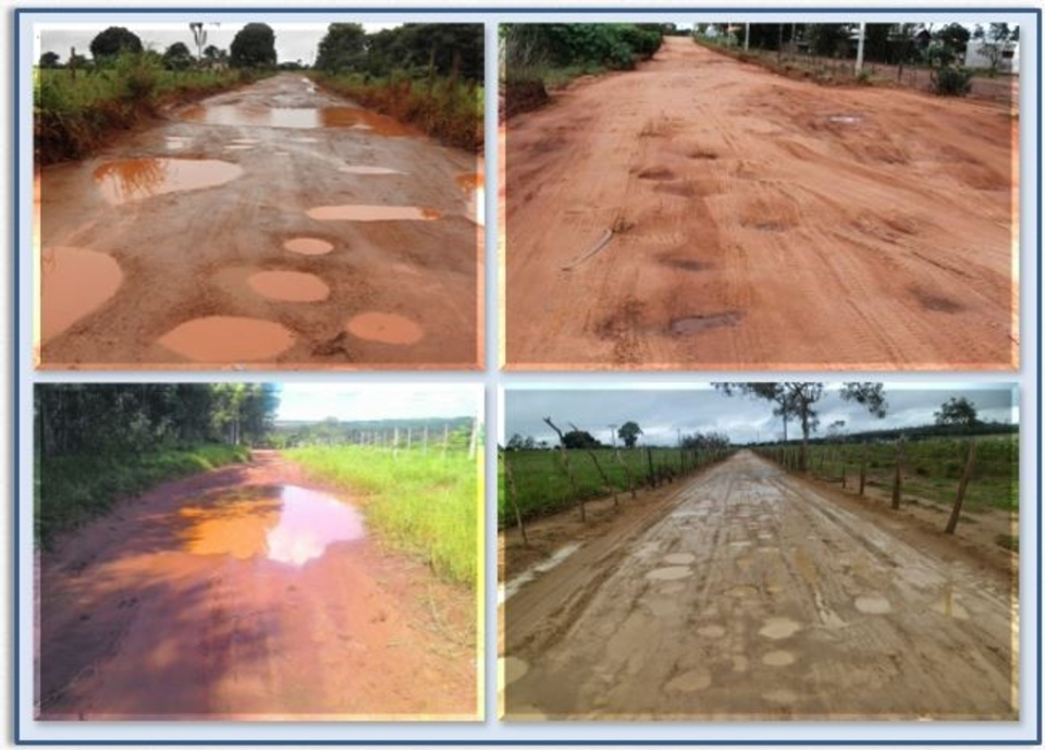 Nas imagens acima, os segmentos viários VICINAIS apresentam deficiência na trafegabilidade devido a problemas causados em período chuvoso.